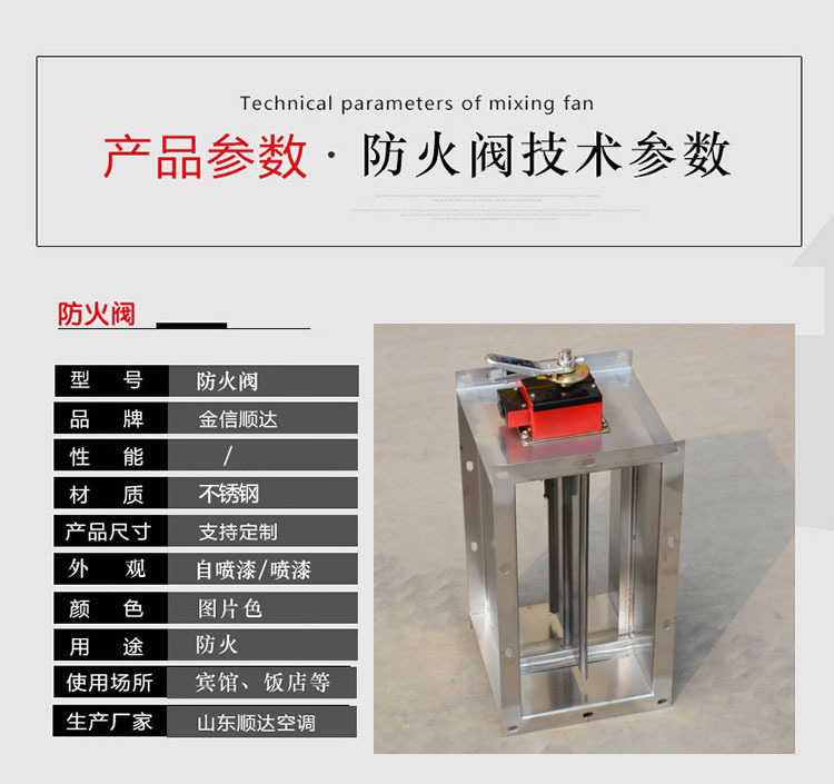排煙防火閥是一種消防部件,一般安裝在機(jī)械排煙系統(tǒng)的管道上,平時(shí)呈開啟狀態(tài),發(fā)生火災(zāi)時(shí)開啟排煙,當(dāng)排煙管道內(nèi)煙氣溫度達(dá)到280度時(shí)關(guān)閉,并在一定時(shí)間內(nèi)滿足漏煙量和耐火完整性要求,起隔煙阻火作用。主要材質(zhì):碳素鋼、鍍鋅板、不銹鋼。