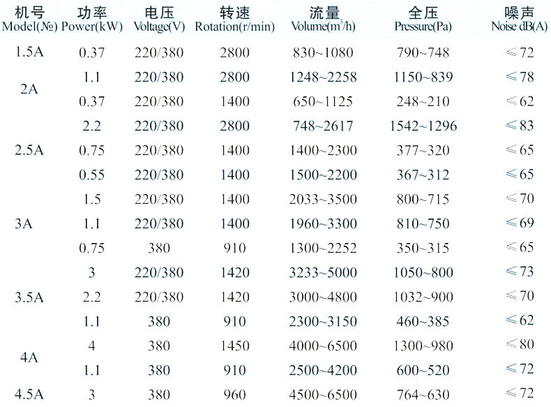 4-72型離心式通風(fēng)機(jī)可輸送空氣和其他不自燃的、對人體無害的、對鋼材無腐蝕性的氣體。氣體內(nèi)不允許有粘性物質(zhì),所含塵土及硬質(zhì)顆粒物不大于150mg/立方。氣體溫度不得超過80°C。該風(fēng)機(jī)具有良好的氣動性能、運(yùn)轉(zhuǎn)平衡、振動小、效率高、壽命長等特點。廣泛適用于工礦企業(yè)、大型建筑物、賓館酒樓等室內(nèi)通氣換氣。B4-72型防爆型離心式通風(fēng)機(jī)、主要有鋁葉輪、機(jī)殼、進(jìn)風(fēng)口等部分與防暴電機(jī)組成、可作為易燃揮發(fā)性氣體的通風(fēng)換氣只用、其性能和安裝尺寸同于4-72型。F4-72型為防腐型離心式通風(fēng)機(jī),主要用不銹鋼(或玻璃鋼)材質(zhì)制成的葉輪、機(jī)殼、進(jìn)風(fēng)口等部分與電機(jī)組成,可用于輸送腐蝕性氣體,其性能與安裝尺寸同于4-72型。